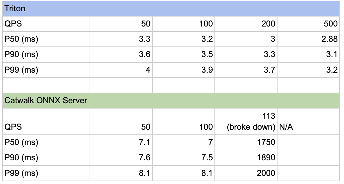 We conducted rigorous testing of Triton against our existing ONNX server under varying levels of request traffic.